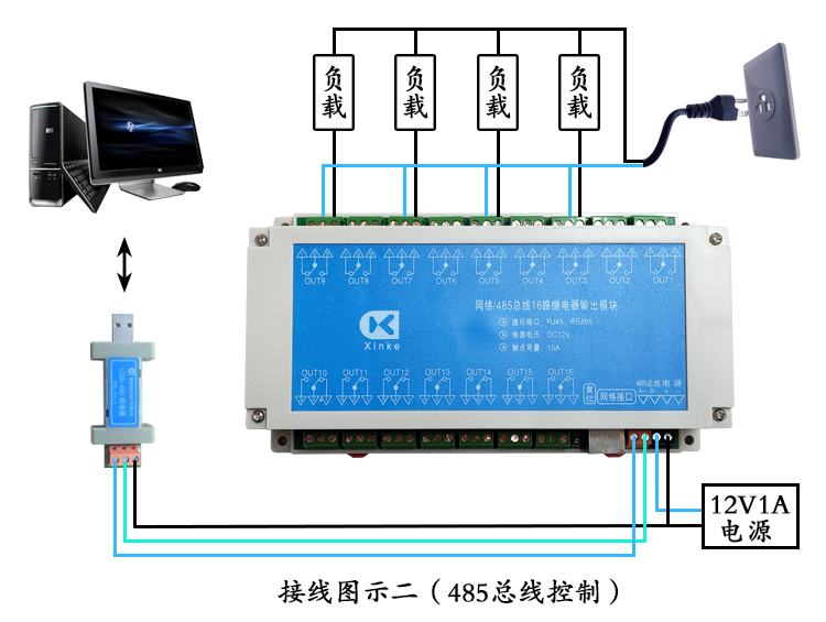 網絡RS232/RS485總線4/8/16/24/32路10A繼電器輸出模塊智能編程板