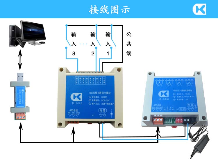 網絡/RS232串口/RS485總線4/8/24/32路無源開關量輸入檢測板